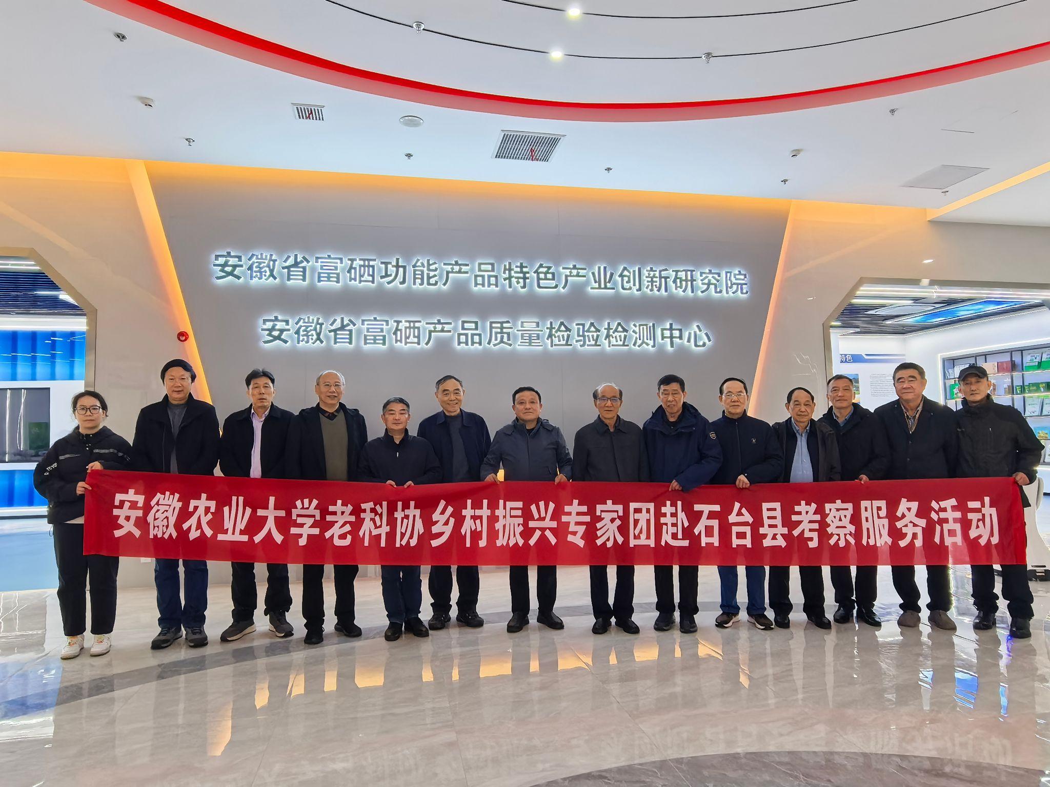 专家组先后实地考察了安徽农业大学石台县富硒农业试验站、文森卡富硒产业园、大演康泉富硒水厂及安徽省富硒功能产品特色产业创新研究院等地,系统了解了校地合作成果及产业创新平台运行情况,重点聚焦富硒特色产业在标准化生产、精深加工、品牌打造等方面存在的短板,精准对接地方政府在科技支撑、政策配套、产业链延伸等方面的实际需求。在大演乡源头村,专家组与石台县副县长、农业农村局负责人、村党支部书记及当地招商企业代表召开现场座谈会,围绕挖掘富硒资源潜力、优化农业产业结构等方面提出了务实建议。校离退休工作处处长、校老科协秘书长王华斌表示,将积极统筹学校离退休专家资源,持续加强与乡村振兴一线的对接合作,创新“县问校答”技术服务模式,将保障服务与作用发挥深度融合,推动更多“银龄”智慧落地生根。
